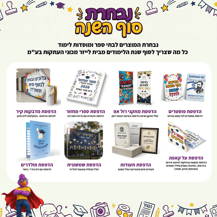 אצלנו בלייזר מכון העתקות, בית דפוס דיגיטלי מקצועי מעניקים פתרונות מקצועיים ומדויקים. אנחנו מתמקדים ביצירת עבודות איכותיות עם תשומת לב לפרטים ועמידה בסטנדרט גבוה בכל פרויקט. כל עבודה מטופלת בקפידה, תוך שימוש בטכנולוגיות מתקדמות וניסיון רחב, מה שמאפשר לנו לספק תוצאות יציבות ואמינות. כל בית דפוס דיגיטלי צריך מקצועיות, יצירתיות וחדשנות אצלנו הן באות לידי ביטוי בכל פתרון. אנחנו מבטיחים שכל פרויקט יישמר במראה מסודר ומרשים, כפי שמצופה מאיתנו.